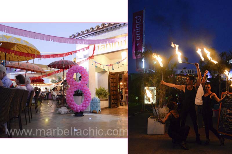 …y son 8 años ofreciendo calidad, buen servicio, innumerables fiestas temáticas, flamenco, jazz, desfiles, presentaciones. Tanino Bar-Restaurante como dice su eslogan, es un lugar donde siempre pasan cosas. Durante todo este tiempo ha habido una continua evolución tanto en la decoración, como en su carta y siempre para bien, por supuesto. Su espectacular terraza se llenaba al completo para festejar este día tan especial para ellos donde fueron recibidos con malabares de fuego, bailarines, la música en vivo de Ernesto Beigveder, Vicky y Rocío Madera que hicieron levantar a los asistentes de sus mesas y hasta fuegos artificiales. Trudy y José capitanean este barco que seguro seguirá con buen rumbo… Felicidades¡¡¡