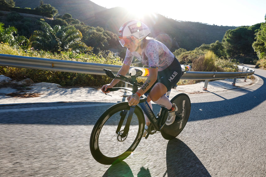 La carrera comenzaba con una prueba de natación de 1,9 km (1,2 millas) en el mar Mediterráneo con salida y llegada desde la playa de Levante en Puerto Banús. Luego, las atletas se embarcaron en un recorrido de 90 km (56 millas) de un solo bucle que recorrió la famosa avenida bordeada de palmeras «Milla de Oro» que corre paralela al mar y pasa por la geografía escénica de las ciudades de Monda, Coín y Ojén antes de regresar al puerto deportivo de Puerto Banús. El recorrido de dos vueltas y 21,1 km (13,1 millas) llevó a las atletas inmediatamente al paseo marítimo de Marbella, paralelo al mar Mediterráneo, antes de culminar en la orilla del agua en la playa para una inolvidable línea de meta del Campeonato Mundial IRONMAN 70.3.