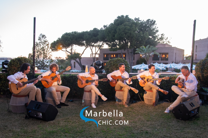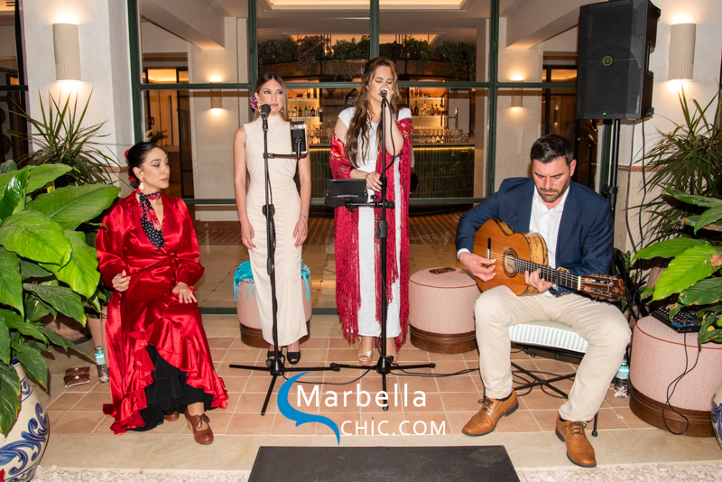 La noche comenzó con un elegante aperitivo donde los asistentes empezaron a sumergirse en la propuesta gastronómica del resort, en un ambiente distendido y sofisticado. A lo largo de la velada, un grupo flamenco puso el acento más auténtico, aportando ese carácter andaluz que define la identidad del espacio.