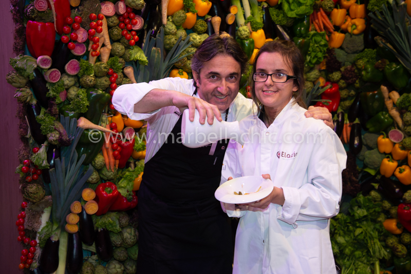 ELADIO estuvo acompañado de algunas de las grandes Marcas que distribuye en la Costa del Sol, como Koppert Cress, líderes internacionales de la denominada arquitectura aromática; Vehortu, verduras y hortalizas de Tudela en Navarra o Hida Alimentación, líder de conservas vegetales tradicionales, entre otras. Así como de los equipos de cocina de los principales hoteles y restaurantes de la Costa del Sol.