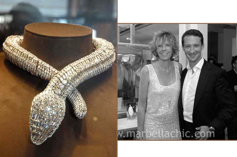 La segunda jornada de Marbella Luxury Weekend ha deparado momentos únicos e irrepetibles para los privilegiados asistentes a este escenario exclusivo dedicado a la moda y el lujo. Sin aliento se ha quedado quien ha tenido oportunidad de acercarse a la boutique de Cartier y observar de cerca la pieza que la firma de joyería ha traído con motivo de este gran evento. Un collar con forma de serpiente creada para la actriz mexicana, María Félix, la diva mejicana (1914-2002) arquetipo de la femme fatale latina y que trabajó en el cine hasta finales de los años 60. Totalmente articulada, está realizada en platino, oro amarillo y blanco, con más de dos mil diamantes y dos esmeraldas que conforman los ojos del reptil. Está considerada una de las mejores joyas creadas en el siglo XX. La directora de comunicación de Cartier, Simoneta Gómez Acebo, ha sido la encargada de mostrar en Marbella una joya que pertenece al museo de la entidad. Esta pieza tiene un valor incalculable en el mercado.