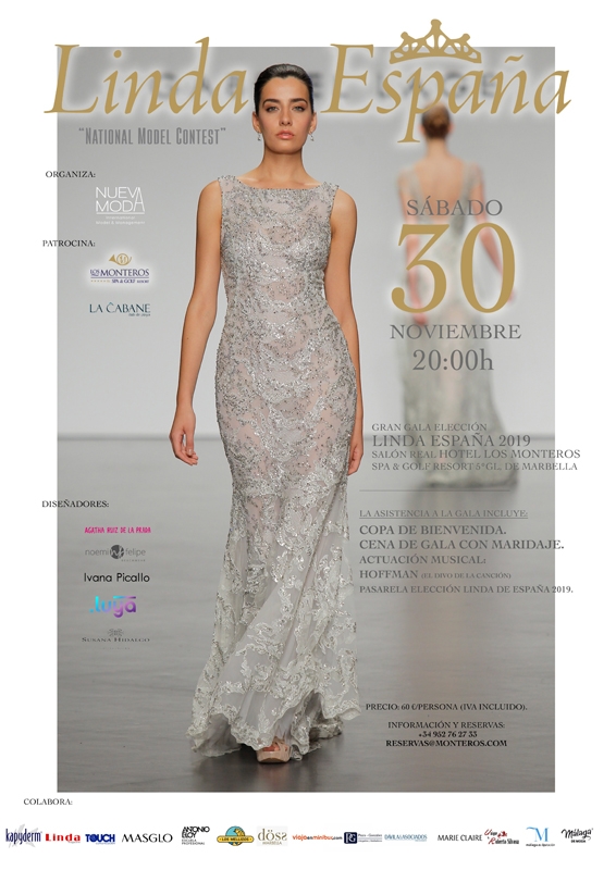 Marbella acoge Linda España 2019, concurso de modelos nacional donde las aspirantes optarán al título en la final que se llevará a cabo en el Hotel Los Monteros Golf & Spa Resort 5*G.L. de Marbella el próximo miércoles 27 de noviembre. Durante su estancia en Marbella, realizarán actividades propias del concurso visitando los lugares más emblemáticos de Marbella, como el Palacio de Congresos y Celebraciones Adolfo Suárez, conocerán la gastronomía malagueña, realizarán entrevistas con el jurado y sesiones de fotografía y pasarela en las instalaciones del Hotel y Club La Cabane. El día 29 de noviembre a las 20:30 h. las candidatas desfilarán en el restaurante döss Marbella, con los diseños de Jesús Segado y será elegida la modelo más elegante. La gala final tendrá lugar el sábado 30 de noviembre a las 20.30 horas en el Salón Real del Hotel Los Monteros Golf & Spa Resort 5* GL, incluye cena de gala, pasarela y elección Linda España 2019 (Información y Reservas: +34 952 76 27 33 reservas@monteros.com) y estará presentada por Jacqueline Campos con la actuación del artista Hoffman. En pasarela contaremos con la diseñadora del colorido y la alegría, Ágatha Ruiz de la Prada; la originalidad y exclusividad de la firma, Luya; la diseñadora argentina, Ivana Picallo; la firma de baño, Noemi Felipe y los trajes de la diseñadora malagueña, Susana Hidalgo que nos presentará una colección creada en exclusiva para Linda España.