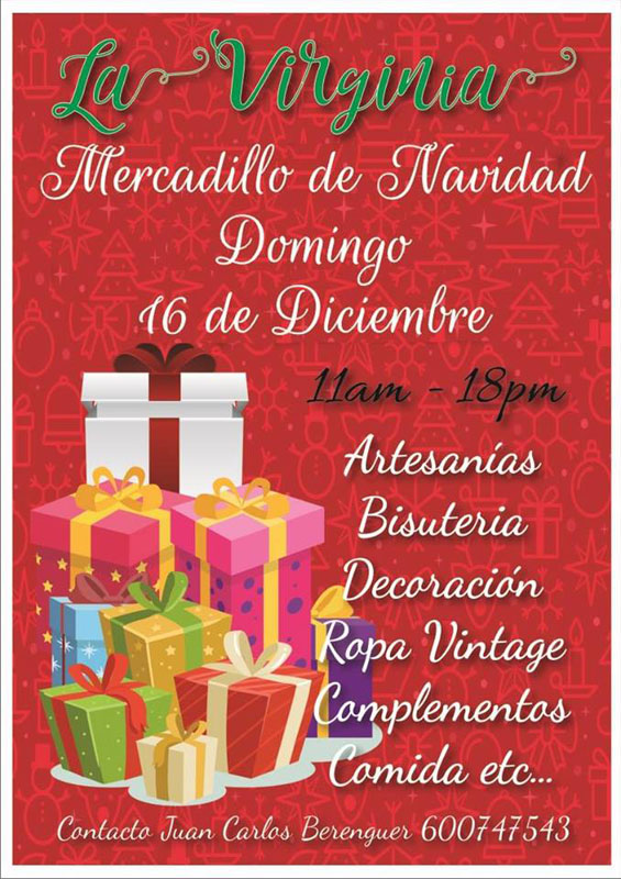 Mercadillo Navideño en La urbanizacion la Virginia, artesanias,decoracion,ropa,joyas, complementos, bisuteria, pañuelos, bolsos,comida y bebida ,,,,,,,,,,,Vente a Disfrutar del Mercadillo con mas glamour de la costa
