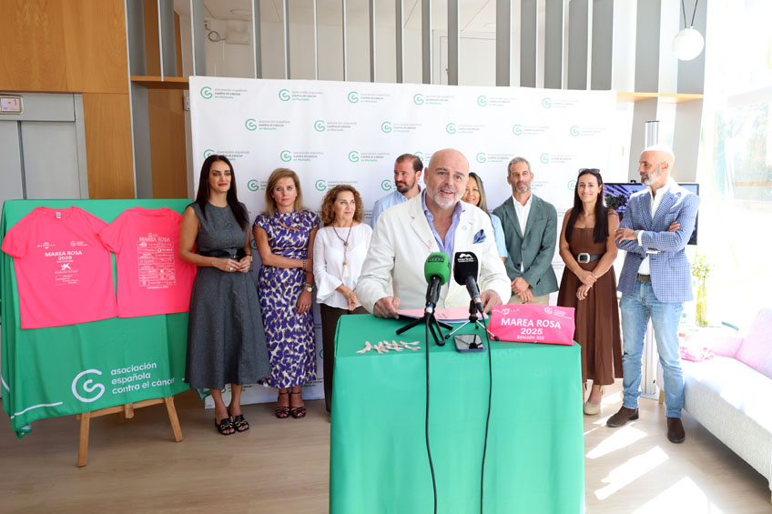 MARBELLA (Málaga), 9 de octubre de 2025.- El presidente de la Asociación Española Contra el Cáncer en Marbella, Santiago Gómez-Villares, Lisandro Vieytes, delegado de Deportes, Sanidad, Consumo y Servicios e Isabel Cintado, delegada de derechos Sociales, Igualdad y Diversidad del Ayuntamiento de Marbella, junto a Genoveva Gutiérrez Prieto, directora del área de negocio de CaixaBank en Marbella-Costa del Sol, han presentado una nueva edición de la Carrera “Marea Rosa”, que se va a disputar el domingo 16 de noviembre a beneficio de la lucha contra el cáncer de mama. Por parte de la asociación acompañaban al presidente Setareh Mohregui, vicepresidenta de Marbella, María Matías, vocal de eventos, Francisco Eduardo Sánchez, vocal de misión, José Higuera, vocal de sostenibilidad; Javier Muñiz, vocal de voluntariado y Tamara Bastida, vocal de Juventud de la sede de Marbella.