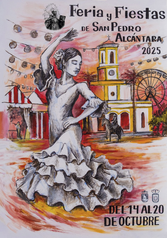 Programa Feria San Pedro Alcántara 2025. El Ayuntamiento presenta el cartel de la Feria y Fiestas de San Pedro Alcántara, obra del artista local José Enrique Ragel ‘Bestror’. El trabajo, que combina elementos tradicionales y urbanos de la identidad sampedreña, ha sido seleccionado en un proceso participativo en el que se registraron más de 50 propuestas.