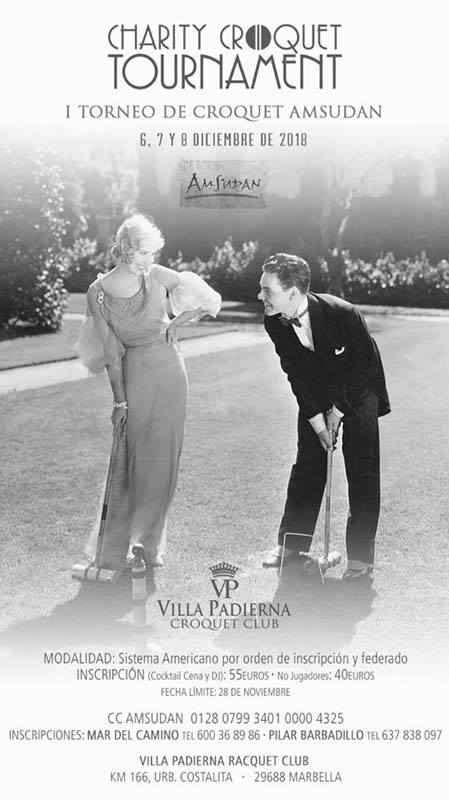 Ven a pasar un buen rato con nosotros al tiempo que colaboras con una buena causa. Hemos organizado un Torneo Benéfico de Croquet que tendrá lugar los días 6, 7 y 8 de diciembre en Villa Padierna Croquet Club tras el cual celebraremos una cena cóctel amenizada con DJ. Para participar, sólo tienes que ponerte en contacto con: