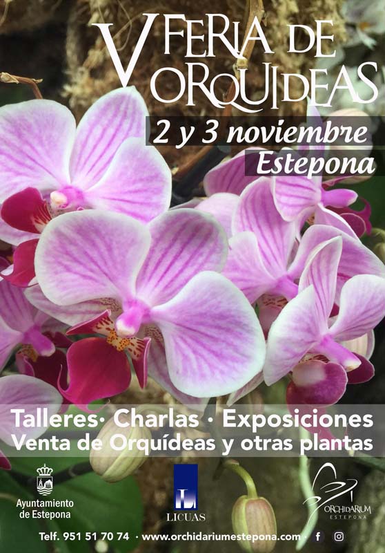 El Parque Botánico Orquidario acogerá los días 2 y 3 de noviembre la V Feria de Orquídeas de Estepona,. Este evento contará con una exhibición y venta de orquídeas tropicales. Además de poder ver las orquídeas, la feria incluye la celebración de varios talleres gratuitos de iniciación a las orquídeas, montaje y trasplante de orquídeas, y cuidados y resolución de problemas habituales, que serán impartidos por Pantrópica Coleccionistas de Orquídeas. Durante esos dos días también habrá charlas, exposiciones y venta de orquídeas. El programa previsto para las charlas es el siguiente: