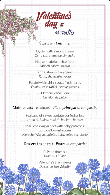 ofrecerá un menú especial de San Valentín, creado para disfrutar en pareja de una velada única en un ambiente elegante y acogedor.