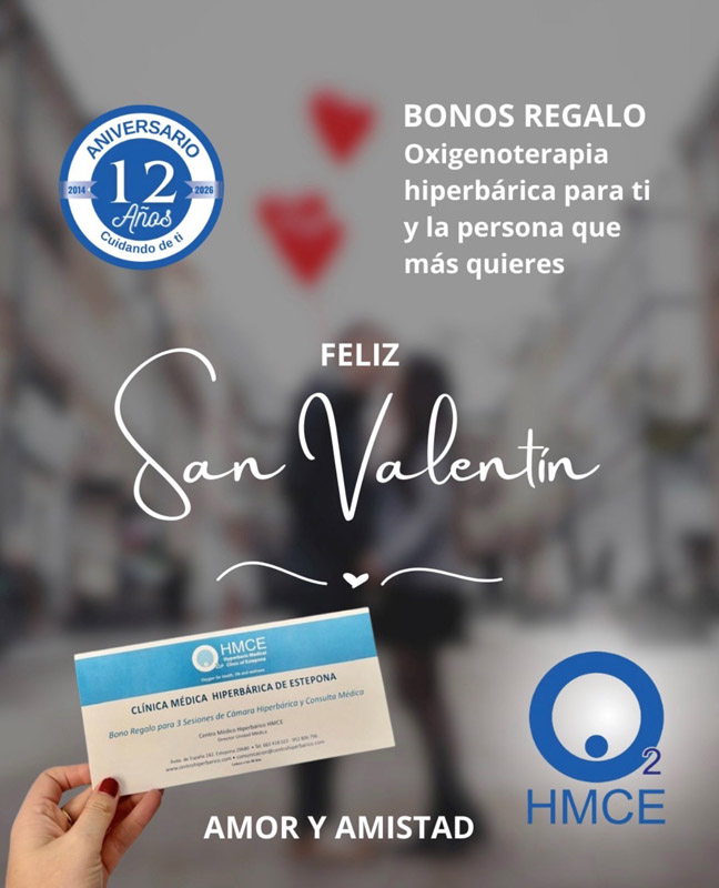 Desde la Clínica Hiperbárica de Estepona ya hemos preparado esta semana los bonos regalo para este mes de febrero. Regala oxigenoterapia hiperbárica, el regalo que llega al corazón… y a cada célula. Durante todo el mes de febrero, en la Clínica Hiperbárica de Estepona, celebramos el amor y la amistad de la forma más saludable.